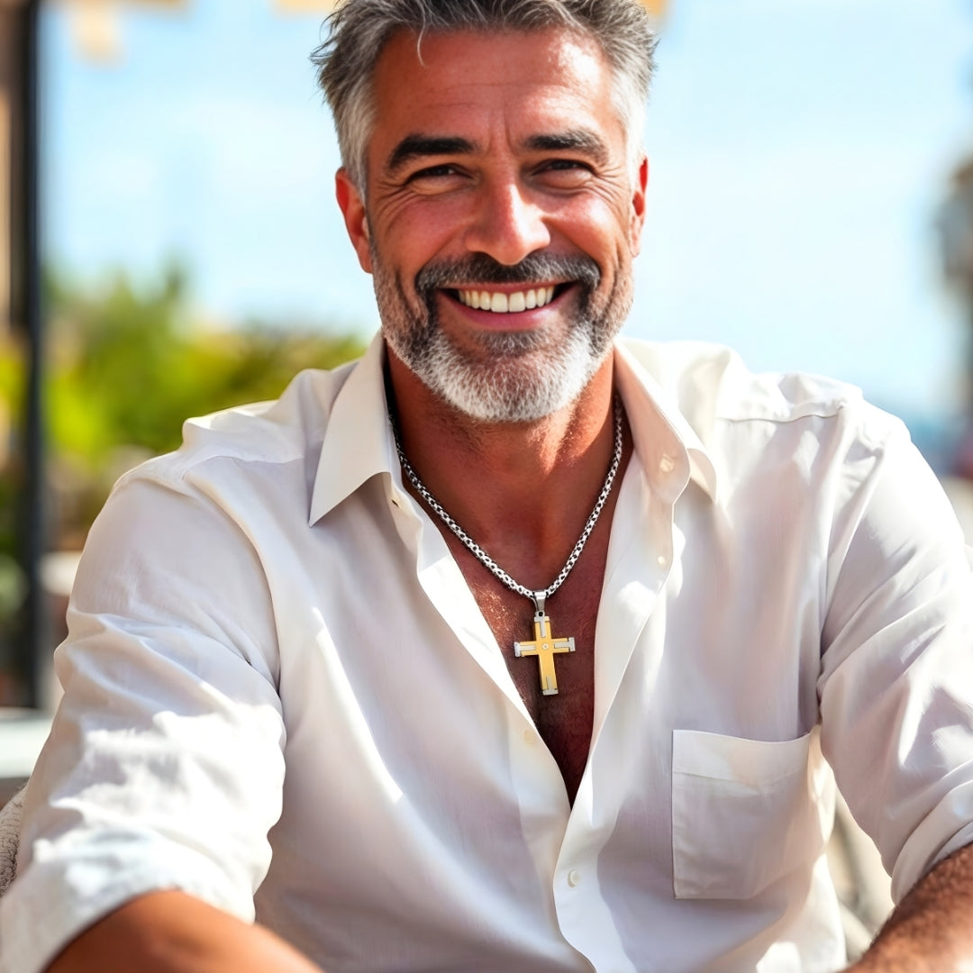 Imaginez Marc, entrepreneur toujours en mouvement. Du matin où il s'habille rapidement pour un rendez-vous important, jusqu'au soir où il retrouve ses amis pour un verre, son pendentif reste un point d'ancrage visuel qui complète chacune de ses tenues. Sans effort, sans entretien, sans compromis.