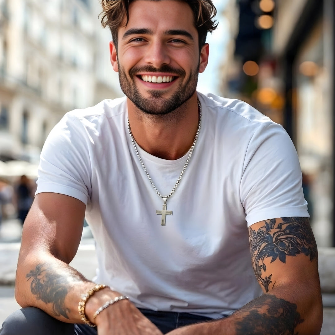 PORTEZ LE COLLIER HOMME, PENDENTIF LA CROIX ÉQUILIBRE ET STRUCTURE AU QUOTIDIEN.