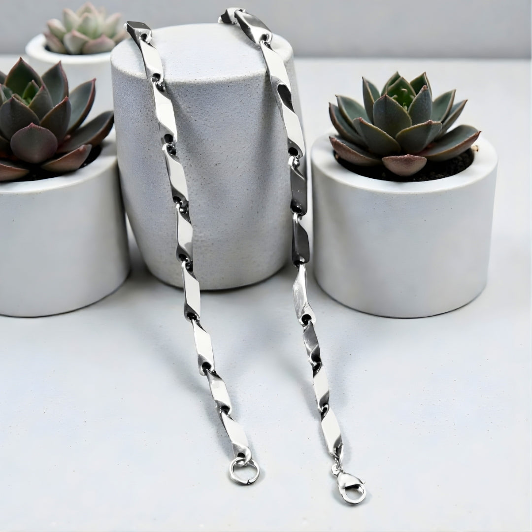 - Effet visuel captivant grâce à la forme torsadée des maillons